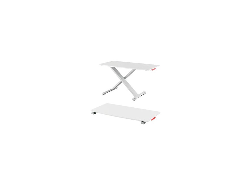 Tento „stôl na stole“ sa dá rýchlo nastaviť na požadovanú výšku a premení akýkoľvek bežný stôl na mobilný pracovný priestor, ktorý sa ľahko prispôsobí a zároveň zostáva pevný a stabilný v akejkoľvek výške. Pneumaticky asistované nastavenie bez námahy zdvihne dosku stola do požadovanej výšky, pohyb je vedený priamo hore a dole v jednej stope, čo šetrí miesto. Farba sivá.Dodatočné parametre