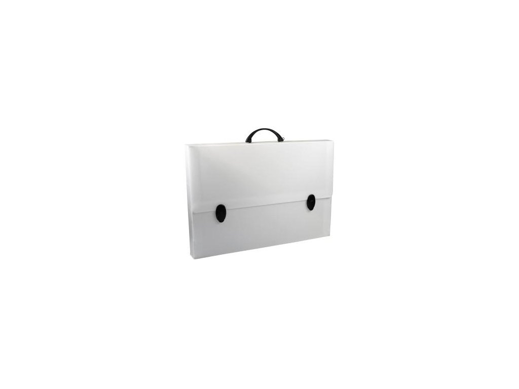 Aktovka plastová A3+ s držadlom DONAU transparentná. Box A3+ biely s rukoväťou a 2 zámkami čiernej farby, vyrobený z PP, odolný. Vhodný na formát A3, rozmery 53,5 x 37 x 5 cm.Dodatočné parametre
