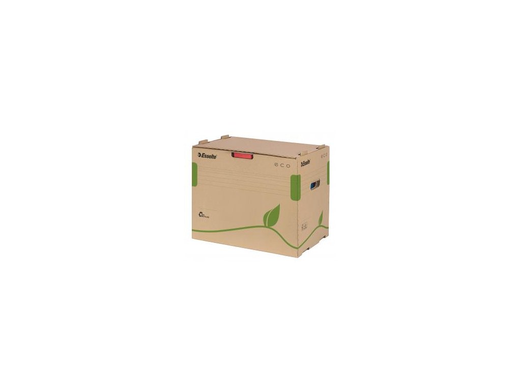 Krabica z archivačného systému Esselte ECO navrhnutá so zeleným prístupom. 100% recyklovateľná s 85% podielom spotrebiteľského odpadu, certifikovaná FSC. Veľkosť optimalizovaná iba na papiere A4 s cieľom minimalizovať odpad pri výrobe.Rozmery (š x v x h): 305 x 343 x 427 mm