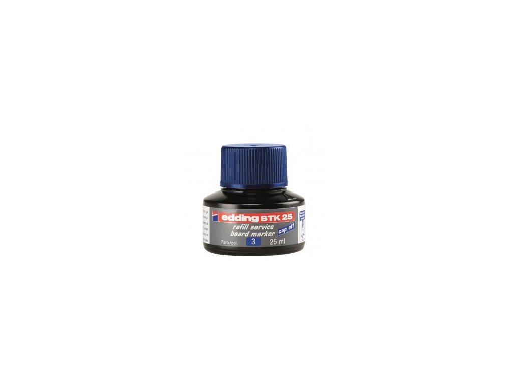 Atrament slabého zápachu s kapilárnym systémom na dopĺňanie popisovačov edding 250, 360, 361 a 363, určených na biele tabule. Tento chemický prípravok je nebezpečný. Obsah fľaštičky 25 ml.Pri doĺňaní vložte prednú časť popisovača špičkou do fľaštičky a po niekoľkých minútach bude popisovač pripravený k opätovnému použitiu.Farba: modrá