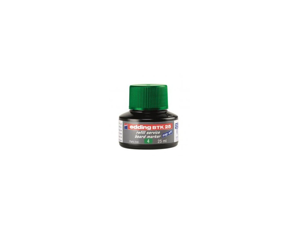 Atrament slabého zápachu s kapilárnym systémom na dopĺňanie popisovačov edding 250, 360, 361 a 363, určených na biele tabule. Tento chemický prípravok je nebezpečný. Obsah fľaštičky 25 ml.Pri doĺňaní vložte prednú časť popisovača špičkou do fľaštičky a po niekoľkých minútach bude popisovač pripravený k opätovnému použitiu.Farba: zelená
