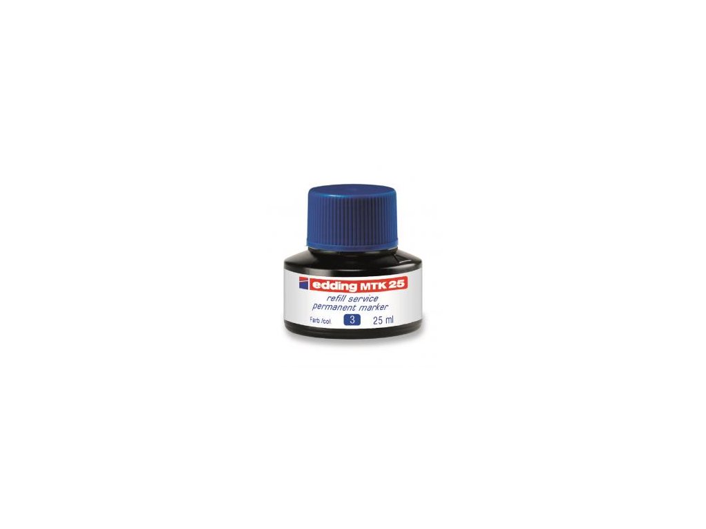 Atrament slabého zápachu s kapilárnym systémom na dopĺňanie permanentných popisovačov edding 2000/-2000 C, 2200/-2200 C, 400, 300, 330 a 370. Obsah 25 ml. Tento chemický prípravok je nebezpečný. Pri dopĺňaní vložte prednú časť popisovača špičkou do fľaštičky a po niekoľkých minútach bude popisovač pripravený k opätovnému použitiu. Obsah 25 ml.Farba: modrá