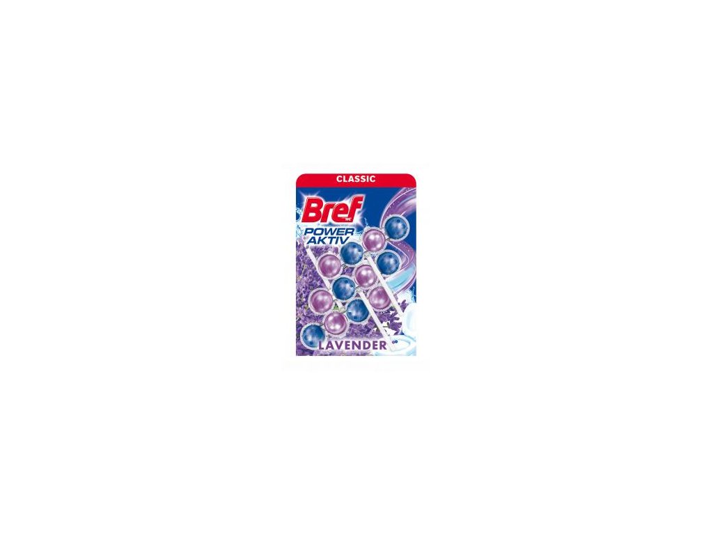 Tuhý WC blok Bref je vo forme 4 guľôčok s receptúrou so 4 funkciami - dokonalá čistota, čistiaca pena, ochrana proti vodnému kameňu a sviežosť. S atypickým tvarom, ktorý sa hodí pre všetky toalety. Certifikovaný ako odolný voči náhodnému otvoreniu deťmi (zdroj Nem. Inštitút pre Normalizáciu - norma DIN EN 862 2006). Vôňa levandule.Zloženie: