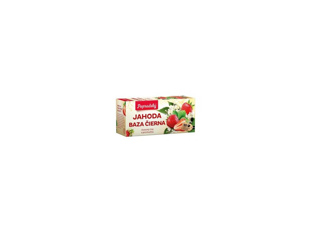 Aromatizovaný ovocný čaj s príchuťou Jahoda a baza čierna. Porciovaný v nálevových vreckách.