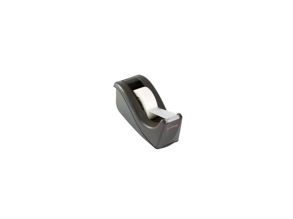Stolový zásobník na všetky pásky Scotch® so záťažou v modernom dizajne. Zabudovaná vyklápacia cievka a kovový nôž na odrezanie pásky. Súčasťou balenia je jedna Scotch® Magic™ páska rozmerov 19 mm × 33 m. Farba čierna.- Pre jednoduché používanie a odvíjanie jednou rukou.