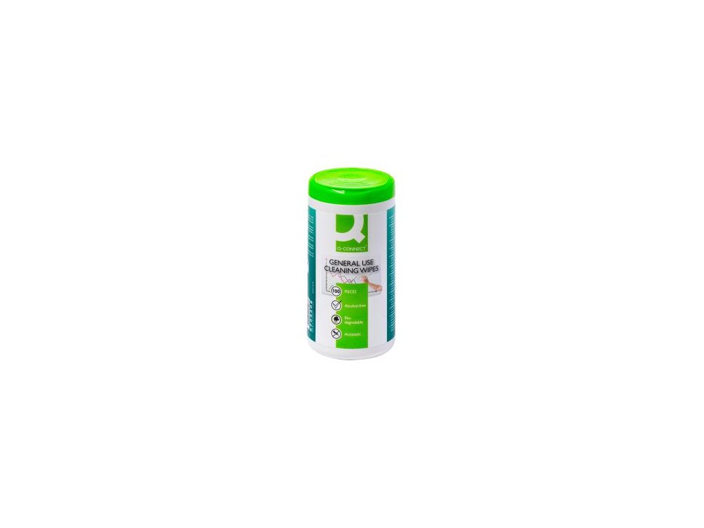 Čistiace utierky na čistenie telefónov a pevných povrchov z plastu, ako sú kryty a povrchy tlačiarní, telefónov a kancelárskeho vybavenia. Praktické balenie - dóza so 100 útržkami oddelenými perforáciou.Biologicky odbúrateľný.