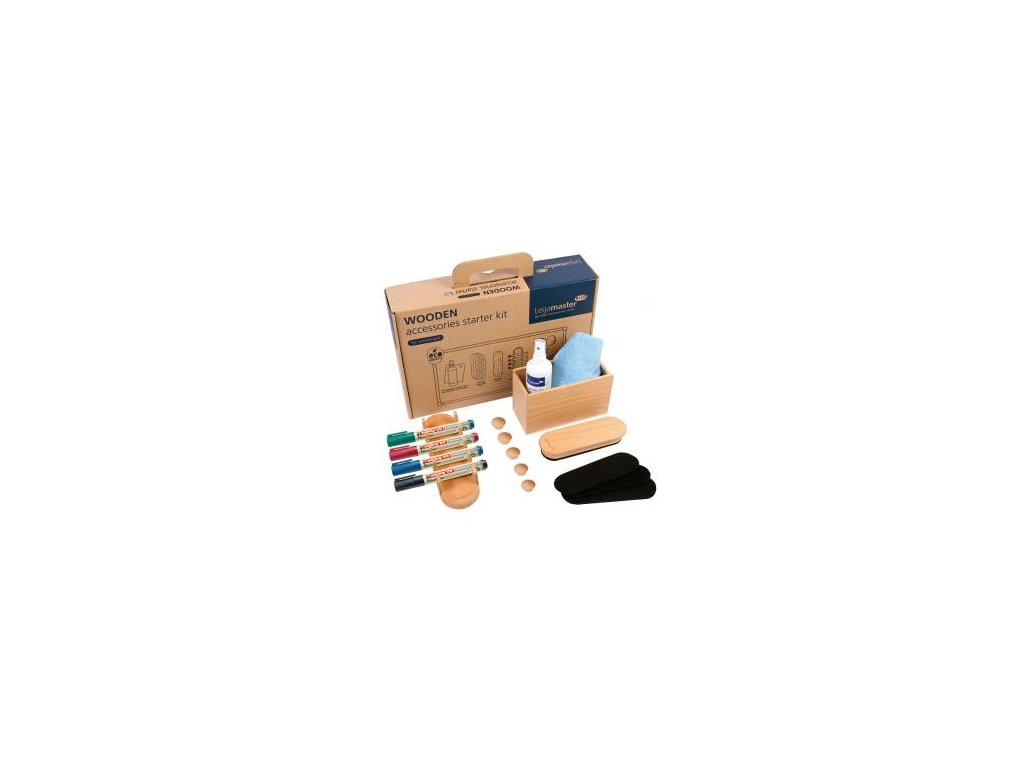 Štartovacia súprava obsahujúca 17 nástrojov na optimálne využitie všetkých tabúľ Legamaster a udržiava poriadok v kancelárii. Produkty obsahujú materiál z dobre spravovaných lesov s certifikátom FSC® a iných kontrolovaných zdrojov (FSC C158462) Obsah: 1x drevená stierka, 3x náhradné náplne do stierky, 1x drevený držiak na príslušenstvo, 1x drevený držiak popisovačov, 5x drevené magnety, 4x Eco- Line 28 - popisovačov na tabuľu (čierna, červená, modrá, zelená), 1x čistič tabúľ TZ7 125ml, 1x utierka z mikrovlákna 40x40cm. Dodávané, znovu naplniteľné popisovače sú klimaticky neutrálne, pretože sú vyrobené z 90 % recyklovateľných materiálov.Dodatočné parametre
