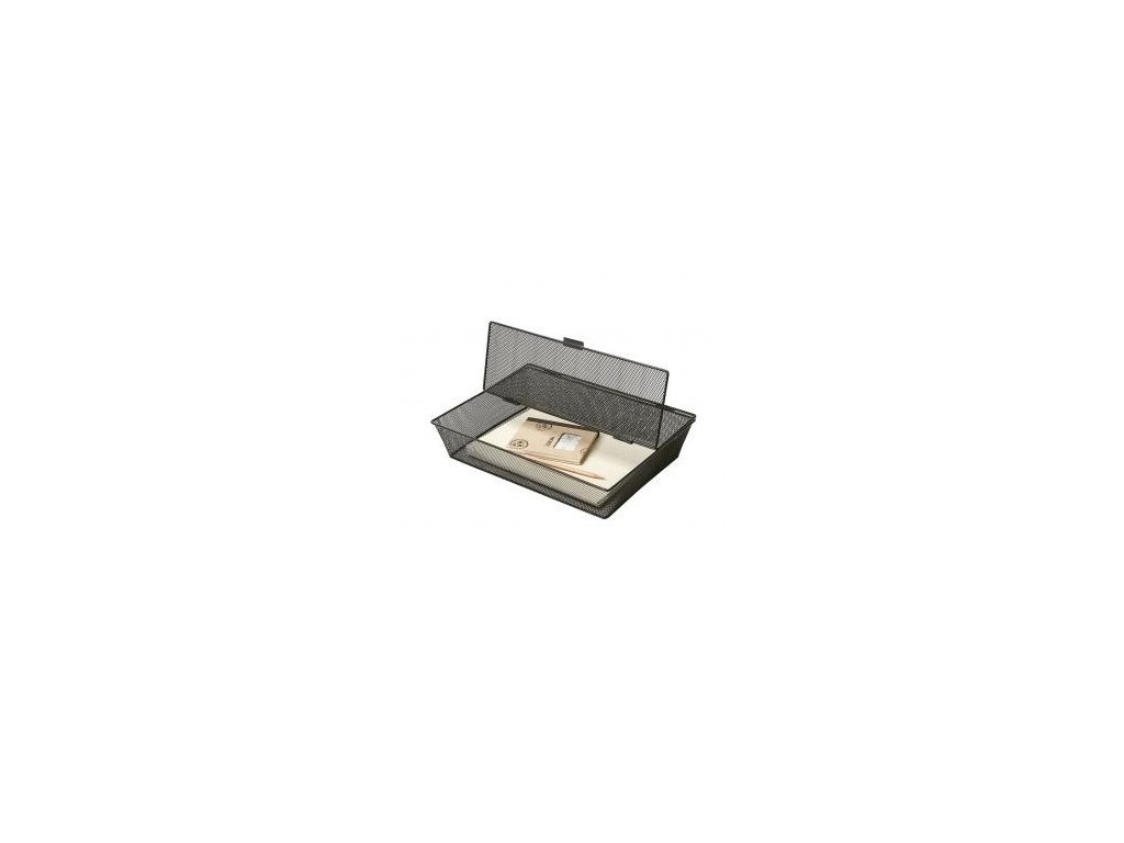Priečinok na dokumenty a časopisy s vekom z kovovej sieťoviny potiahnutej lakom. Formát A4. Rozmery (š × v × h) 390 × 300 × 85 mm. Farba čirna.Dodatočné parametre