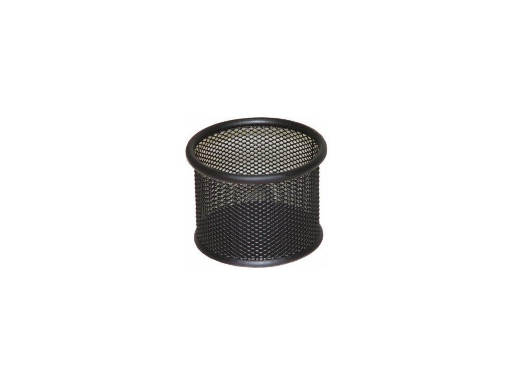 Stojan na kancelárske spony v drôtenej úprave. Priemer 90 mm, výška 68 mm.Farba: čierna