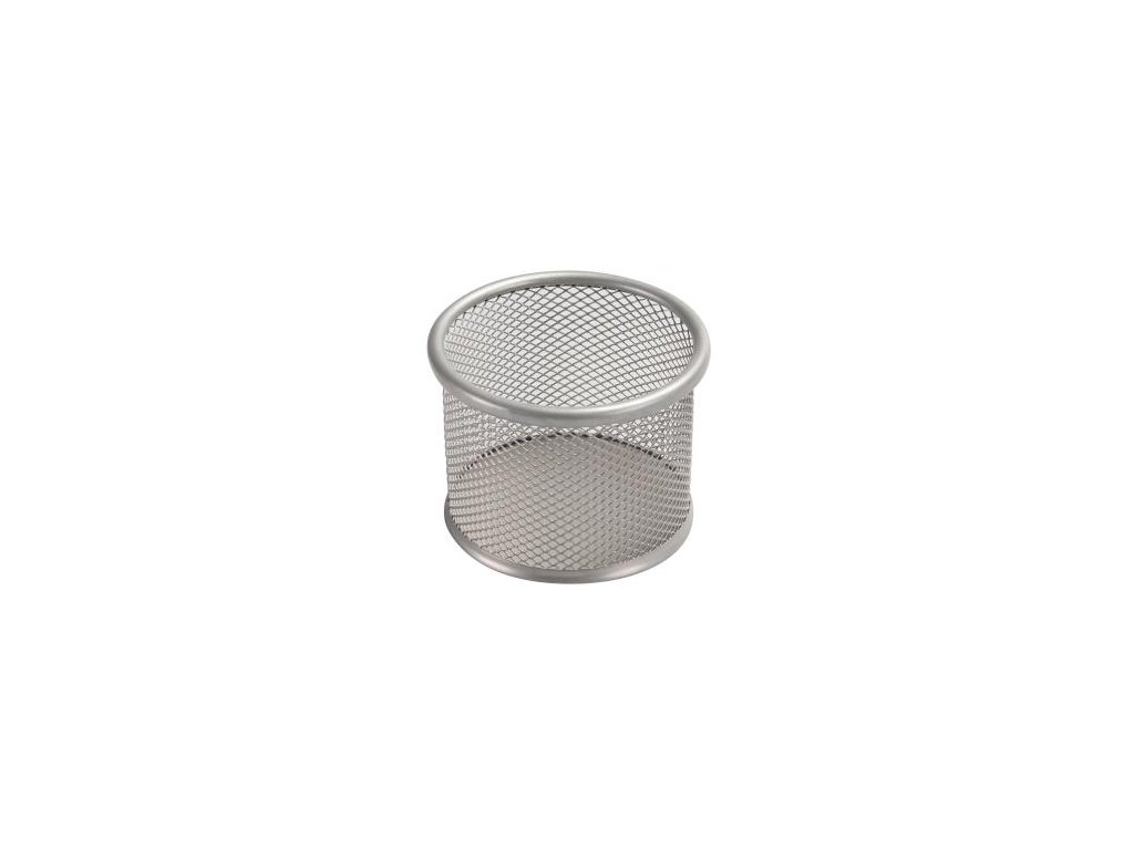 Stojan na kancelárske spony v drôtenej úprave. Priemer 90 mm, výška 68 mm. Farba strieborná.Dodatočné parametre