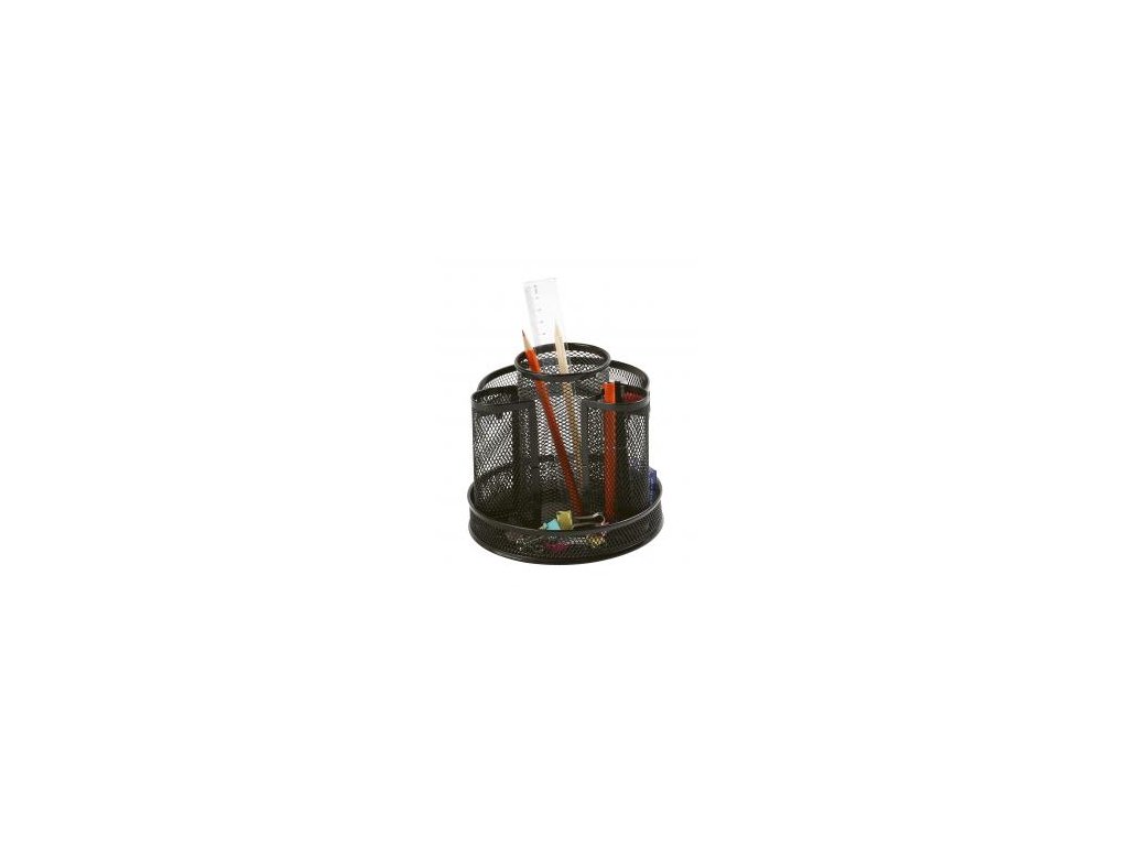 Drôtený organizér s ľahkým prístupom na všetky strany vďaka možnosti otáčania. 4 priehradky na kancelárske potreby, 1 na gumy, sponky, spinky a pod., gumené nožičky. Rozmery (š × v × h) 165 × 165 × 160 mm. Farba čierna.Dodatočné parametre