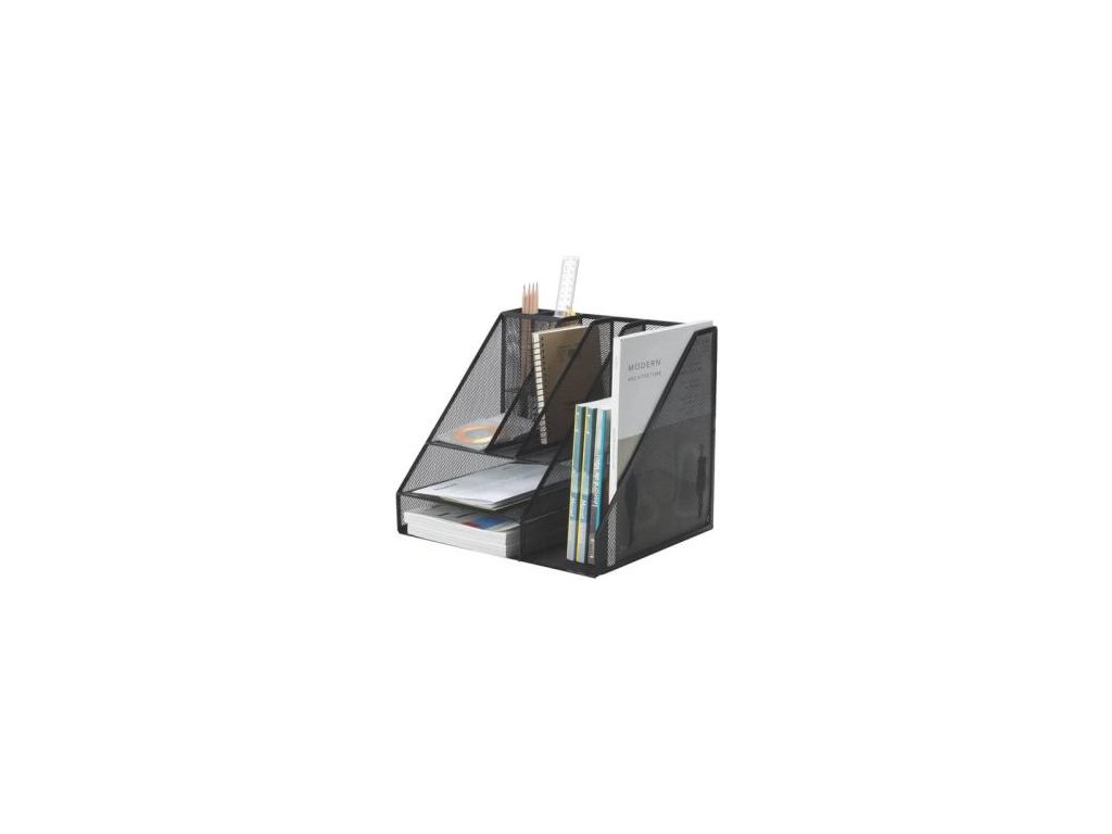 Organizér s 8 priehradkami na kancelárske potreby vyrobený z kovovej sieťoviny potiahnutej lakom. Rozmery 345 x 290 x 295 mm. Farba čierna.Dodatočné parametre