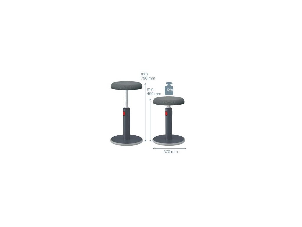 Ergonomická stolička Leitz Ergo umožňuje flexibilný pohyb medzi sedením a státím pri práci, podporuje pohyb svalov, zlepšuje držanie tela a zvyšuje hladinu energie. Má zaoblenú základňu, ktorá podporuje aktívny pohyb otáčaním a hojdaním. Pri práci zároveň posilňujete chrbtové svaly. Výšku možno ľahko nastaviť v rozmedzí 46-79 cm, stolička zostáva pevná a stabilná v akejkoľvek výške. Stolička je pohodlná a praktická, má sedadlo z priedušnej 3D peny potiahnuté vzdušnou sieťovinou protišmykovú základňu, ktorá nepoškodí podlahu. Maximálna nosnosť: 110 kg. Farba sivá.Dodatočné parametre