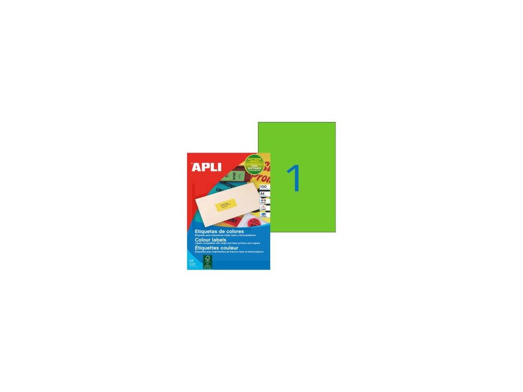 Etikety farebné 210x297mm APLI A4 100 hárkov fluo zelené