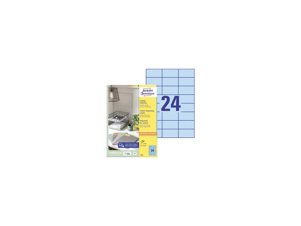 Etikety farebné 70x37mm Avery A4 100 hárkov modré