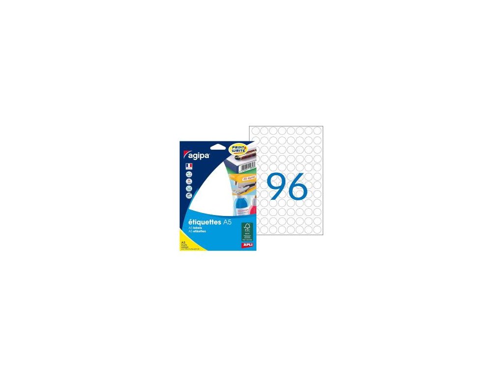 Etikety kruhové 15mm Agipa A5 biele