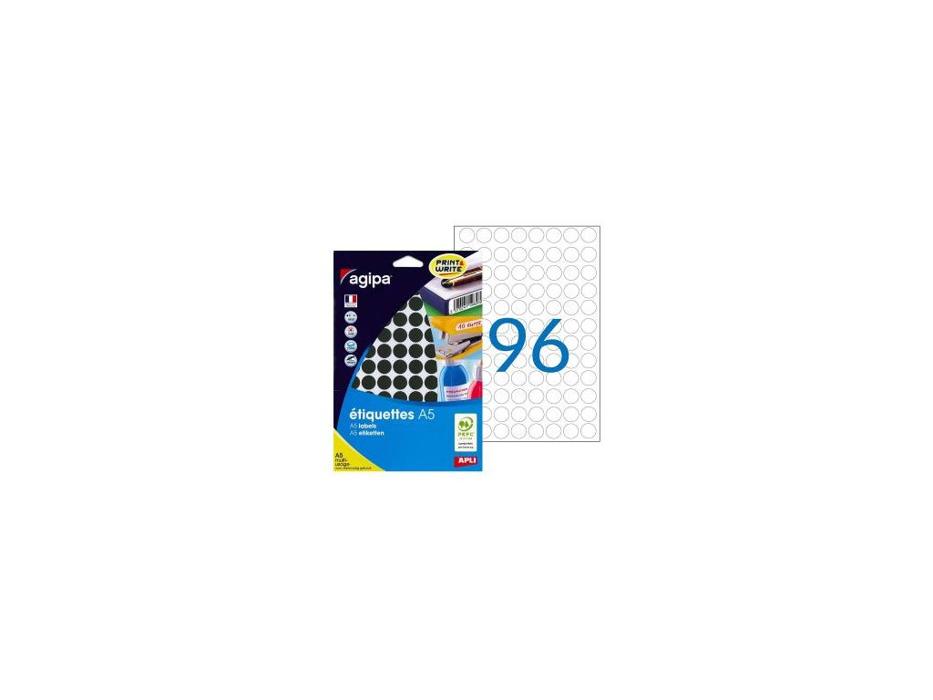 Etikety kruhové 15mm Agipa A5 čierne