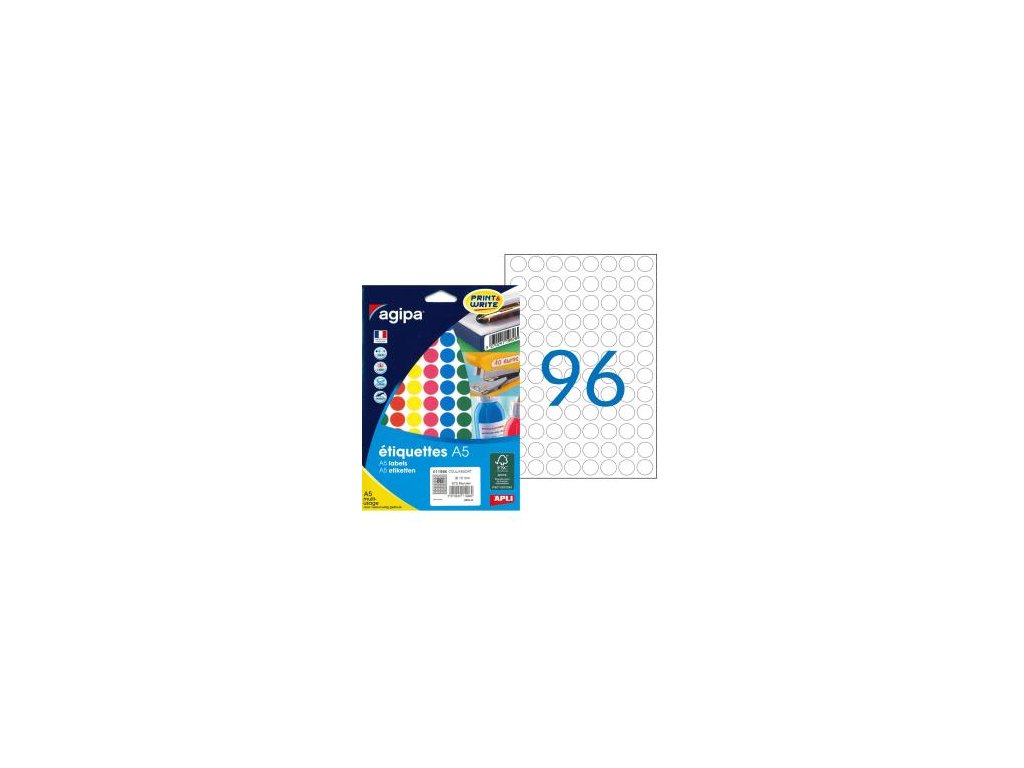 Etikety kruhové 15mm Agipa A5 mix 5 farieb