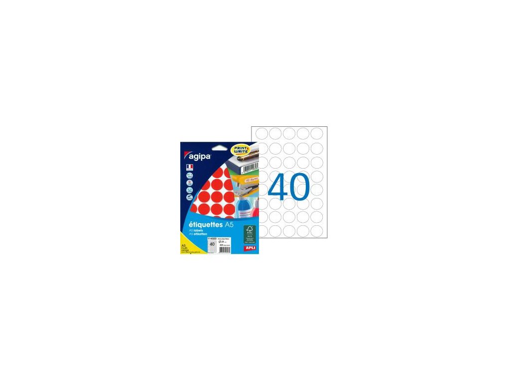 Biele a farebné kruhové etikety na formáte A5.Priemer: 24 mm
