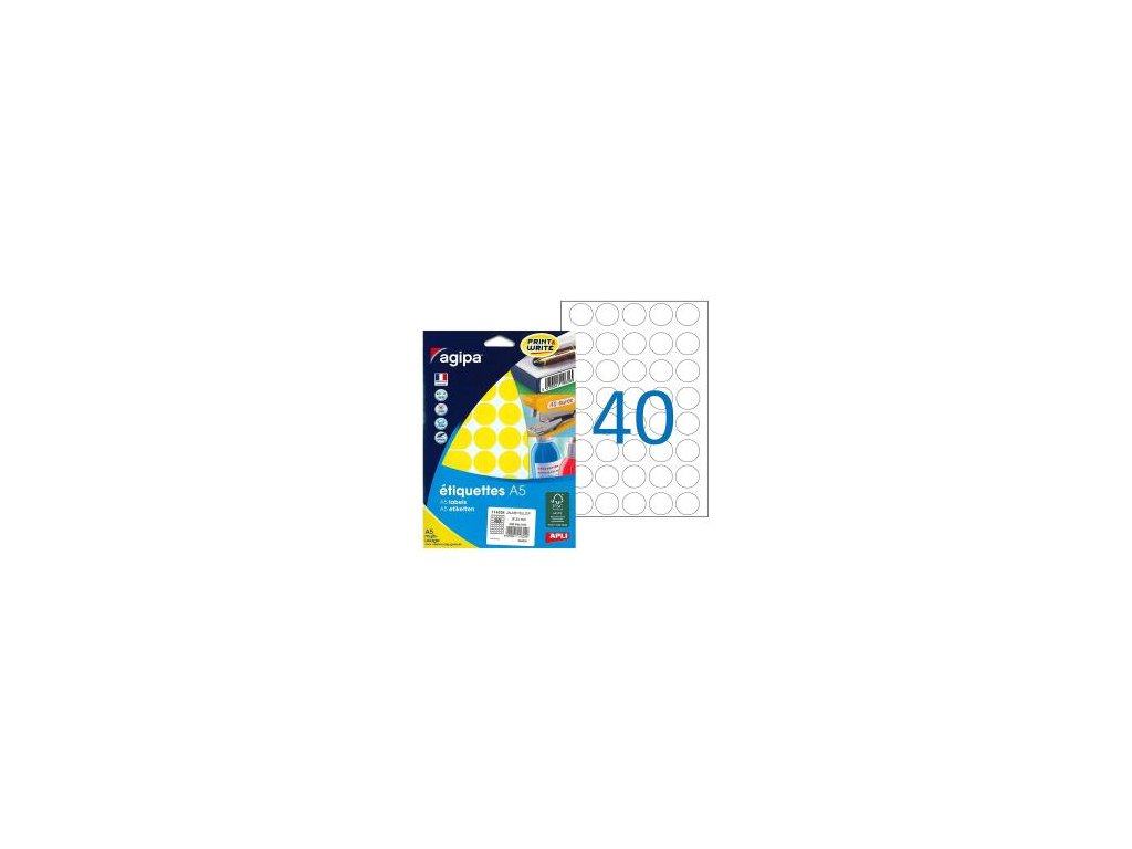 Etikety kruhové 24mm Agipa A5 žlté