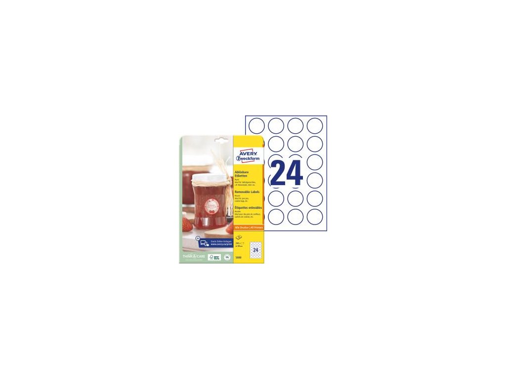 Etikety kruhové 40mm Avery 10 hárkov biele