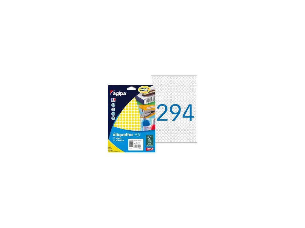 Biele a farebné kruhové etikety na formáte A5.Priemer: 8 mm