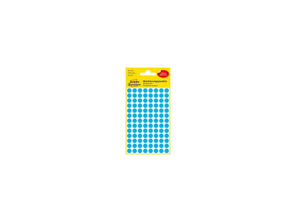 Kruhové etikety na ručný popis. Priemer 8 mm. Farba modrá. Etikety v balení : 416 kusov.Dodatočné parametre