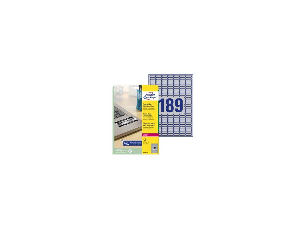 Etikety polyesterové veľmi odolné 25,4x10mm Avery A4 strieborné 20 hárkov