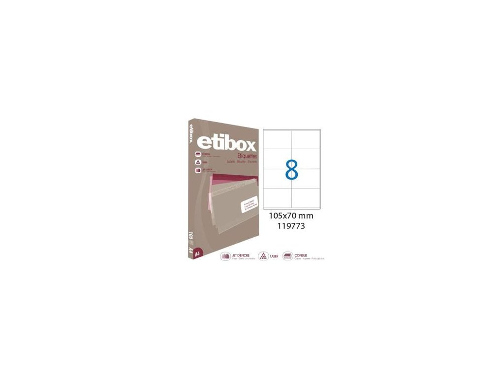Etikety univerzálne 105x70mm Etibox A4 100 hárkov