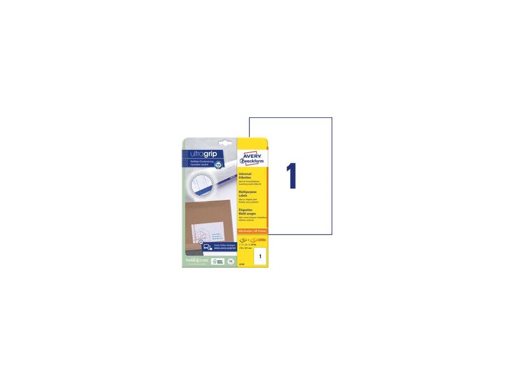 Biele univerzálne etikety vhodné na každodenné použitie v atramentových a laserových tlačiarňach a kopírovacích strojoch. Vďaka inovatívnej technológie ultragrip sa môžete spoľahnúť na bezchybné natiahnutie archu a tlač bez zasekávania. Bezpečnostný okraj QCT zabraňuje zanášaniu tlačiarne lepidlom. Pre laserové tlačiarne testovanéa certifi kované TÜV SÜD. Vysoká lepivosť na rôznych povrchoch. Ostrá tlač bez bez rozmazávania. Etikety sú vyrobené spôsobom šetrným k životnému prostrediu, majú certifi káciu FSC®, sú bielené bez použitia chlóru. Šablóny a softvér pre jednoduchú a rýchlu tlač etikiet k dispozícii zdarma. Formát A4. Balenie 25 + 5 hárkov.