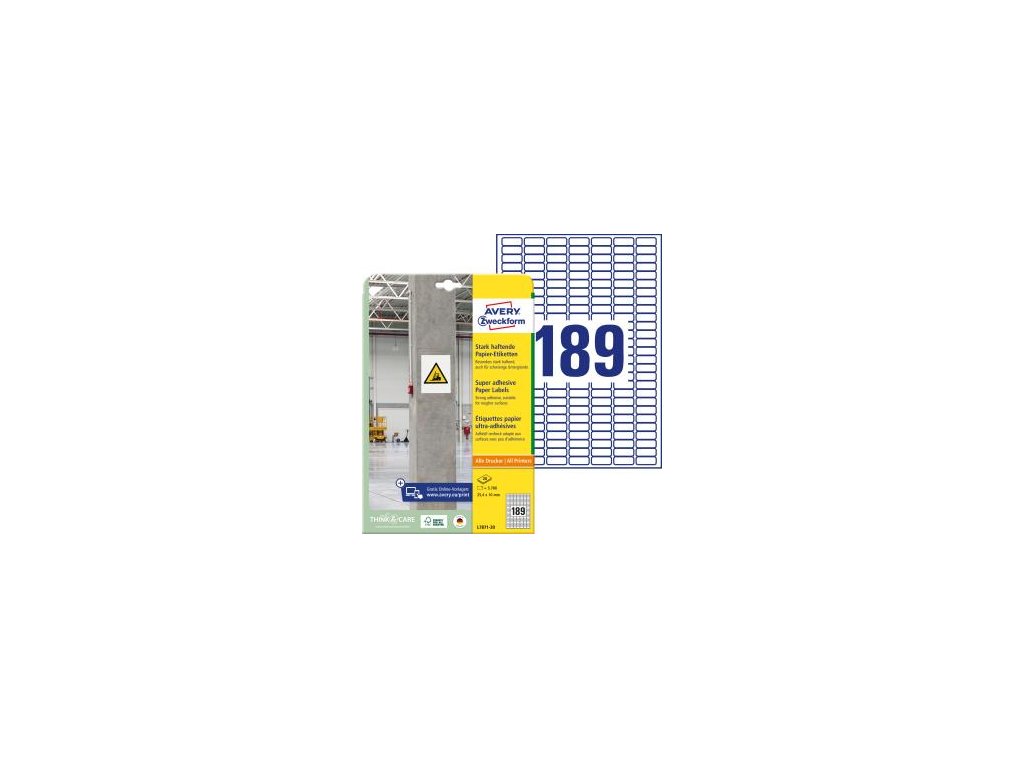 Etikety univerzálne 25,4x10mm Avery A4, silne lepivé 20 hárkov