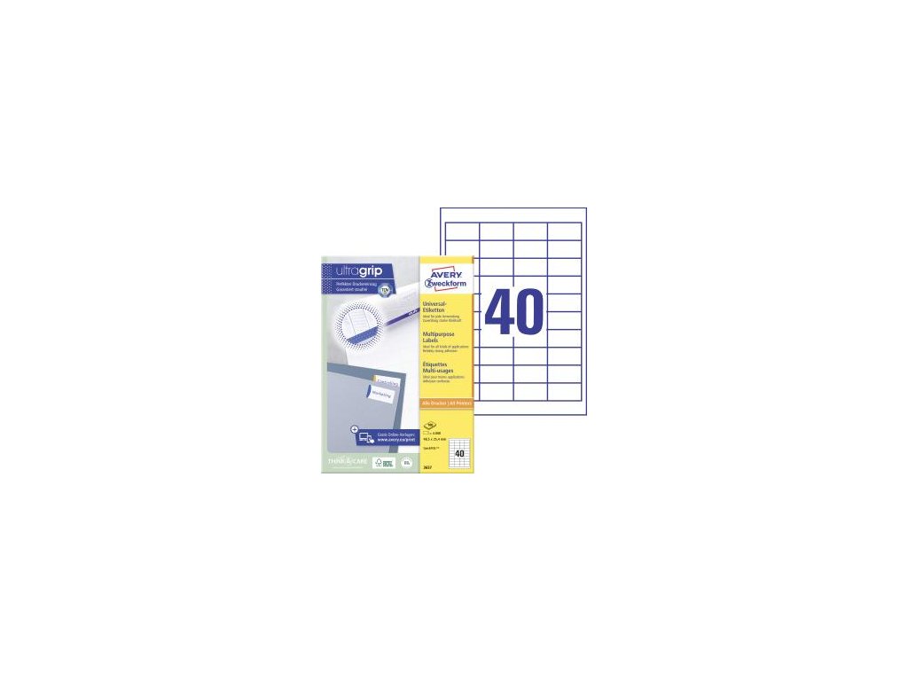 Biele univerzálne etikety vhodné na každodenné použitie v atramentových a laserových tlačiarňach a kopírovacích strojoch. Vďaka inovatívnej technológie ultragrip sa môžete spoľahnúť na bezchybné natiahnutie archu a tlač bez zasekávania. Bezpečnostný okraj QCT zabraňuje zanášaniu tlačiarne lepidlom. Pre laserové tlačiarne testované a certifi kované TÜV SÜD. Vysoká lepivosť na rôznych povrchoch. Ostrá tlač bez bez rozmazávania. Etikety sú vyrobené spôsobom šetrným k životnému prostrediu, majú certifi káciu FSC®, sú bielené bez použitia chlóru. Šablóny a softvér pre jednoduchú a rýchlu tlač etikiet k dispozícii zdarma. U niektorých rozmerov systém QuickPEEL™ na rýchlejšie odlepenie etikiet. Formát A4. Balenie 100 hárkov. Farba biela.Dodatočné parametre