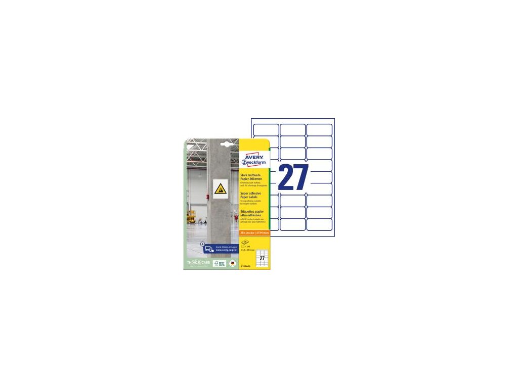 Etikety univerzálne 63,5x29,6mm Avery A4, silne lepivé 20 hárkov
