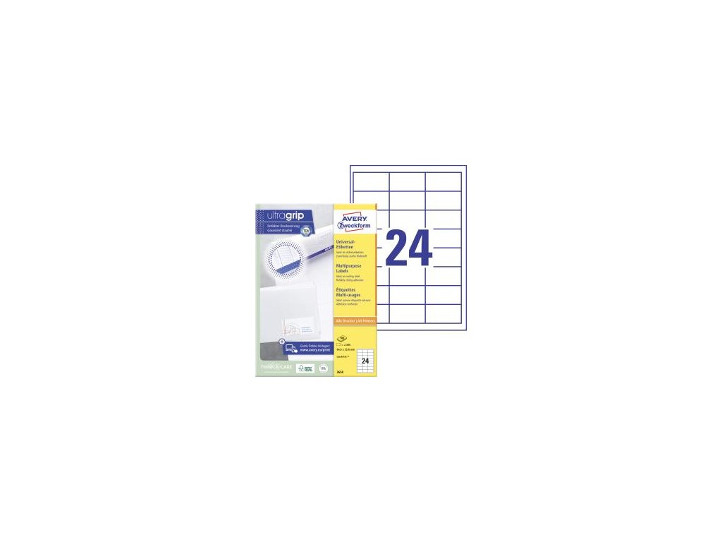 Biele univerzálne etikety vhodné na každodenné použitie v atramentových a laserových tlačiarňach a kopírovacích strojoch. Vďaka inovatívnej technológie ultragrip sa môžete spoľahnúť na bezchybné natiahnutie archu a tlač bez zasekávania. Bezpečnostný okraj QCT zabraňuje zanášaniu tlačiarne lepidlom. Pre laserové tlačiarne testované a certifikované TÜV SÜD. Vysoká lepivosť na rôznych povrchoch. Ostrá tlač bez bez rozmazávania. Etikety sú vyrobené spôsobom šetrným k životnému prostrediu, majú certifi káciu FSC®, sú bielené bez použitia chlóru. Šablóny a softvér pre jednoduchú a rýchlu tlač etikiet k dispozícii zdarma. Formát A4. Balenie 100 hárkov.Dodatočné parametre