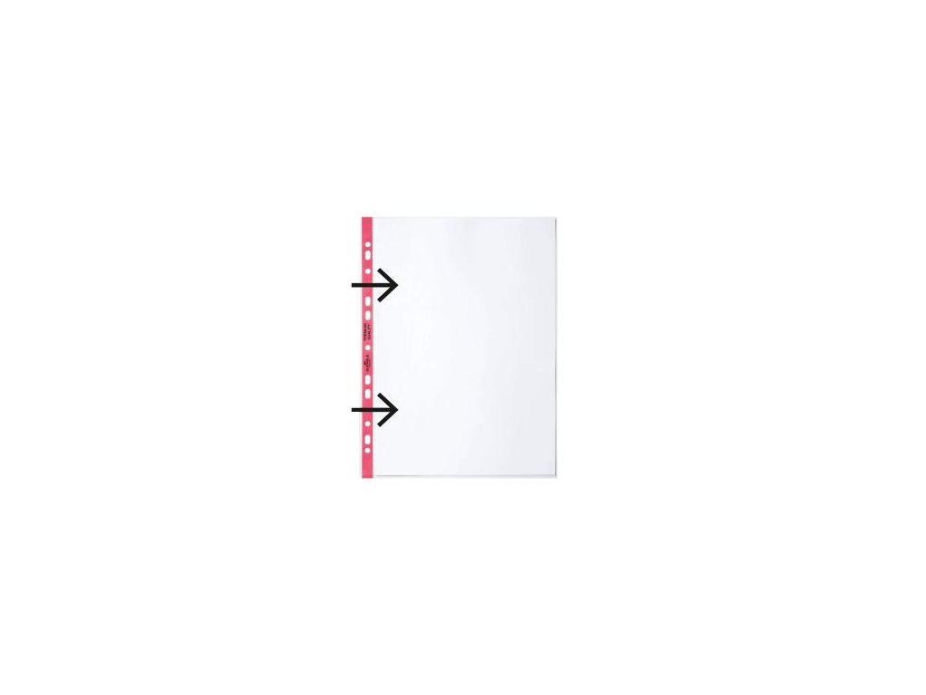Priehľadné euroobaly z polypropylénu s farebným eurodierovaním. Otvor zboku. Formát A4. Balené v sáčku. Farba okraja červená. Balenie 100 ks. Hrúbka 90 mic..Dodatočné parametre