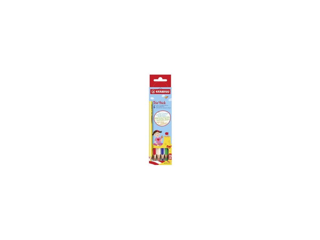 Trojhranné farbičky Trio majú ergonomický tvar pre pohodlné a uvoľnené držanie. Doporučený rozmer pre školákov 1. stupňa. Intenzívne farby, nelámavé tuhy. Priemer tuhy 4,2 mm. Balenie 6 farieb.Dodatočné parametre