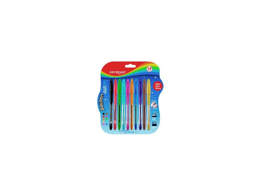 Guľôčkové pero KEYROAD Soft Jet 0,7 mm, blister 10 ks, mix farieb