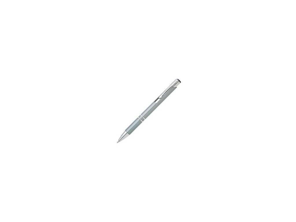 Plastové guľôčkové pero OIRA s kovovými doplnkami. Modrá náplň veľkoobjemová. Farba sivá.Dodatočné parametre