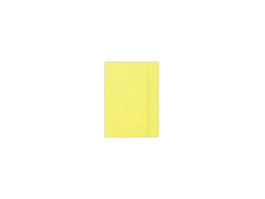 Kartonový obal vyrobený z lepenky s hmotnosťou 400g. Jednostranne potiahnutý vysoko lesklým tlačovým lakom, okrúhla vertikálna guma vo farbe obalu chráni obsah pred vykĺznutím. Károvaná potač. Formát: A4. Farba žltá. Rozmery 232 x 317 mm.Dodatočné parametre