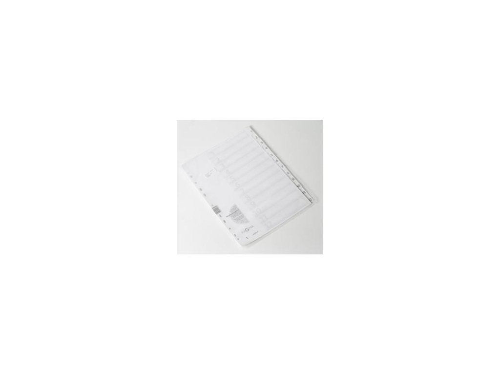 Číselný kartónový rozraďovač. Biele popisovateľné stránky, označené príslušným laminovaným indexom. Euro-dierovanie, biely titulný list. Formát A4, 190 g. Balenie jedna sada v polyesterovom sáčku. V kartóne 40 sád. Farba biela.Popis: A4
