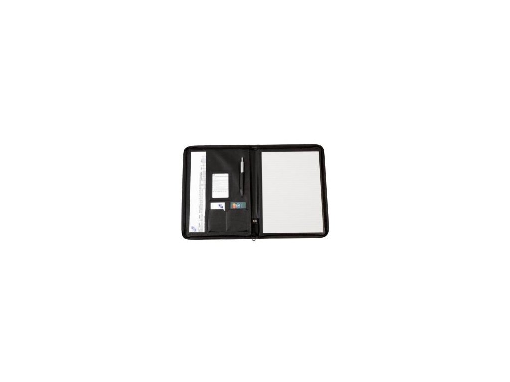 Konferenčná mapa so zipsom, vybavená vreckami niekoľkých veľkostí a linajkovým poznámkovým blokom, bez mechaniky. V prevedení imitácie kože, úprava matná. Šírka chrbta 20 mm.Farba: čierna