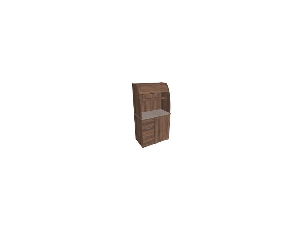 • Dve police vo vrchnej časti kuchynky poskytujú dostatočnú kapacitu na poháre, šálky a taniere. Na pracovnú dosku môžete umiestniť napr. kávovar a káblovou priechodkou v zadnej časti vyvediete kábel z priestoru kuchynky.
