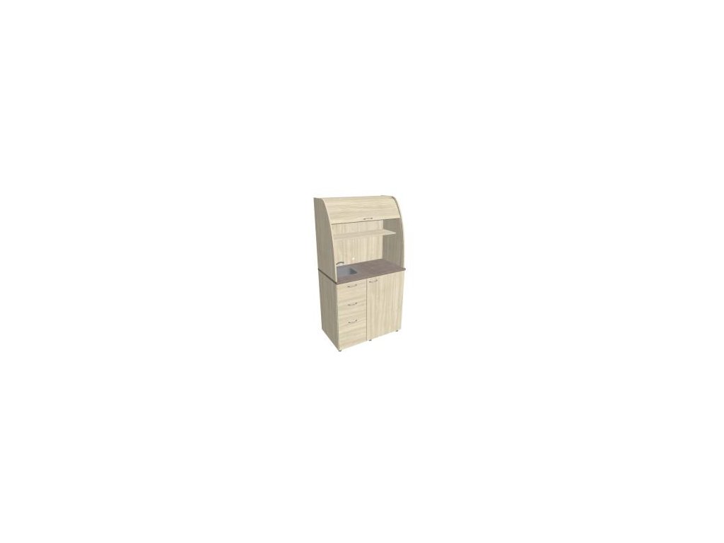 • Dve police vo vrchnej časti kuchynky poskytujú dostatočnú kapacitu na poháre, šálky a taniere. Na pracovnú dosku môžete umiestniť napr. kávovar a káblovou priechodkou v zadnej časti vyvediete kábel z priestoru kuchynky.