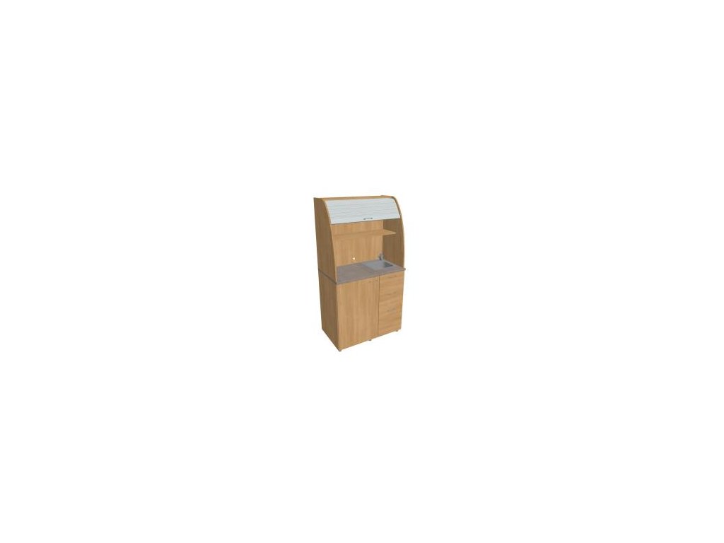 • Dve police vo vrchnej časti kuchynky poskytujú dostatočnú kapacitu na poháre, šálky a taniere. Na pracovnú dosku môžete umiestniť napr. kávovar a káblovou priechodkou v zadnej časti vyvediete kábel z priestoru kuchynky.