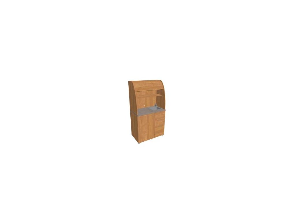 • Dve police vo vrchnej časti kuchynky poskytujú dostatočnú kapacitu na poháre, šálky a taniere. Na pracovnú dosku môžete umiestniť napr. kávovar a káblovou priechodkou v zadnej časti vyvediete kábel z priestoru kuchynky.