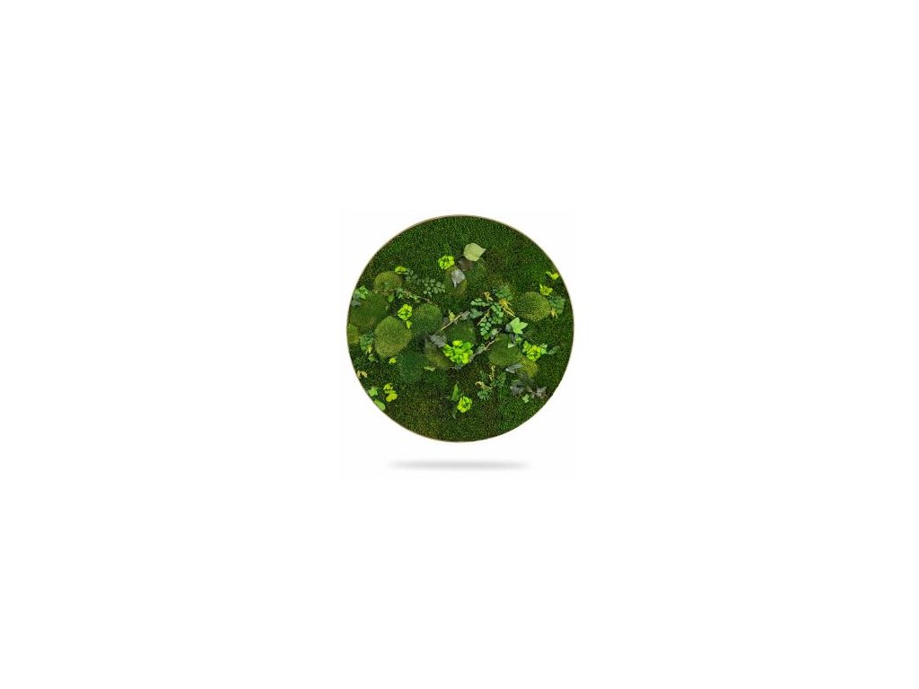 Machový obraz RASTLINY Mesia je tvorený kombináciou machov v zelených odtieňoch so stabilizovanými rastlinami, ktoré jemne dotvárajú prirodzený prírodný dizajn bez rušivých prvkov.