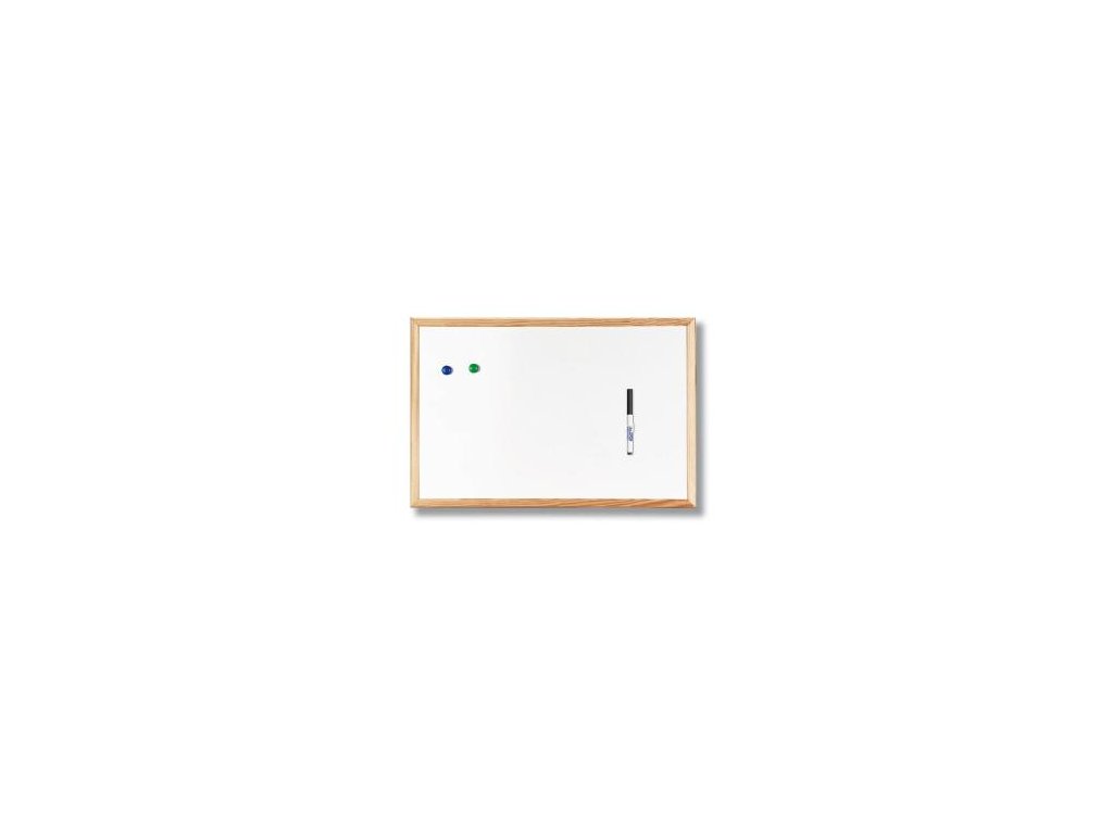 Biela magnetická popisovateľná tabuľa so svetlým dreveným rámom.Rozmery: 40x60 cm