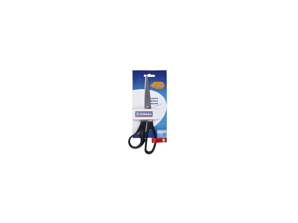 Kancelárske nožnice pre ľavákov na strihanie papiera, kartónu, lepenky, samolepiacej pásky a pod. s pogumovaným úchytom a strihacou časťou z nehrdzavejúcej ocele. Farba čierna.Veľkosť: 20,5 cm