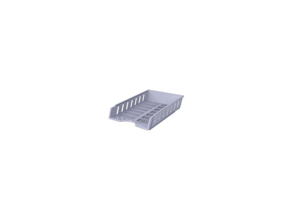 Plastový odkladač na papiere formátu A4 s možnosťou stohovania dozadu. Úprava priehľadná. Väčšie balenie 10 ks.Farba: sivá
