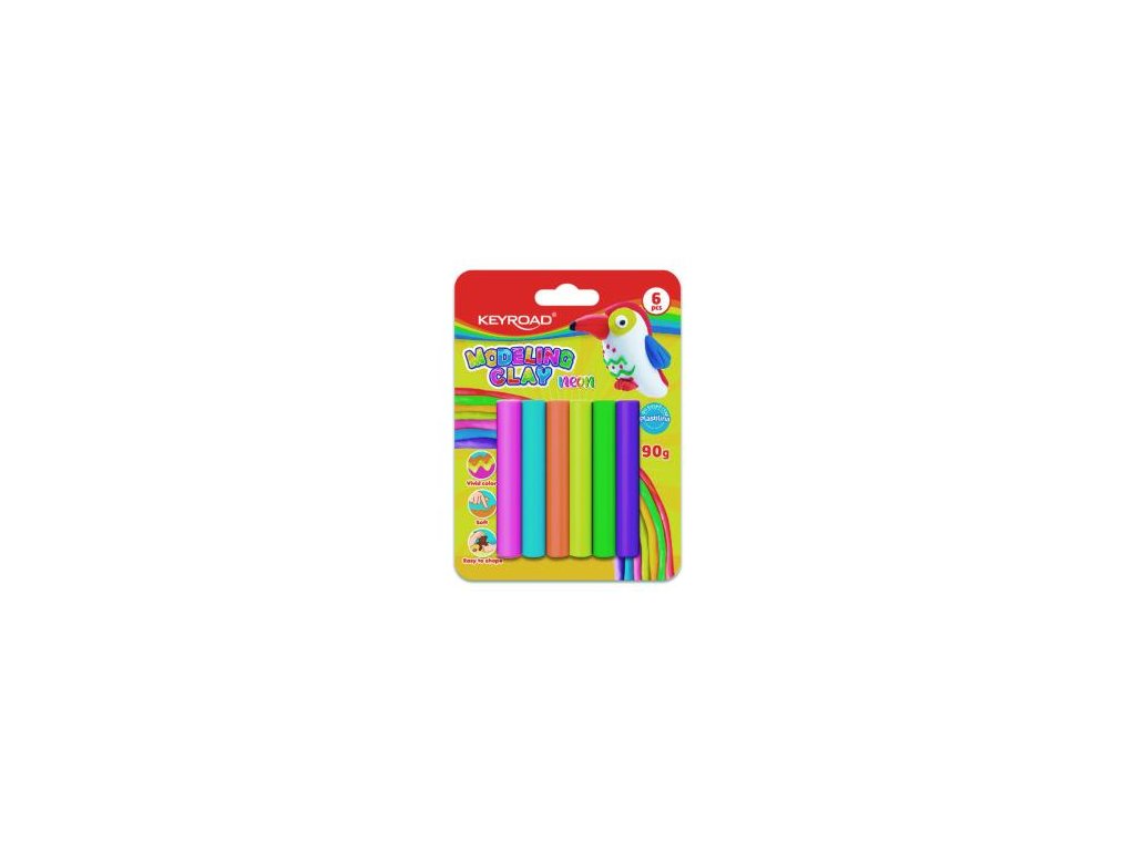 Plastelína KEYROAD neónová, blister 6 ks, mix farieb